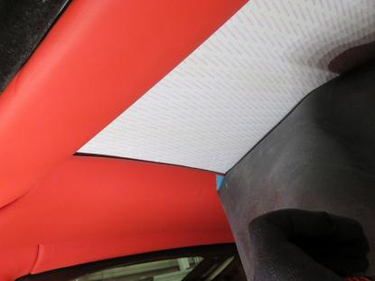 接着する前にヘッドライングの仮合わせをします。 |