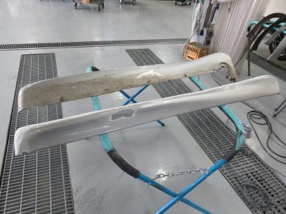 オーバーフェンダーはひずみを取るためにパテを塗って平らに仕上げていきます。 |