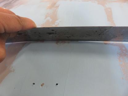 強制乾燥後、400番のペーパーで空研ぎを行ってから800番~1000番の水研ぎペーパーで仕上げます。 |