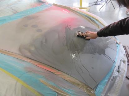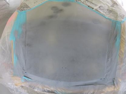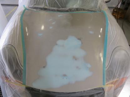 ボンネットも同様に2液型サフェーサーの塗装をします。 |