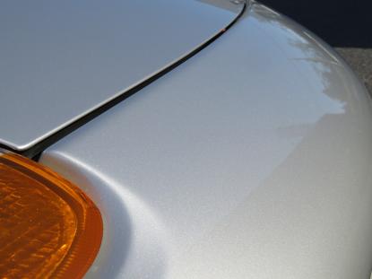 ボンネットの傷もダブルアクションサンダーで削り取り、凹みはパテを塗ります。 |